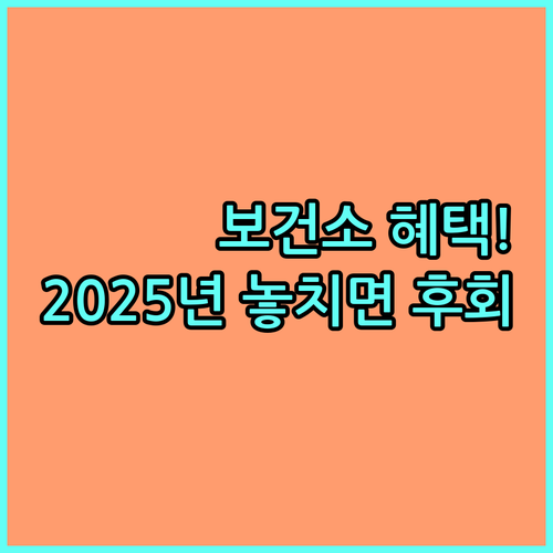 - 신청 방법: 주소지 관할 보건소에 직접 방문하여 신청하면 됩니다. 별도의 신청 기간이 정해져 있지는 않지만, 방문 전에 미리 전화로 확인해 보는 것이 좋습니다.