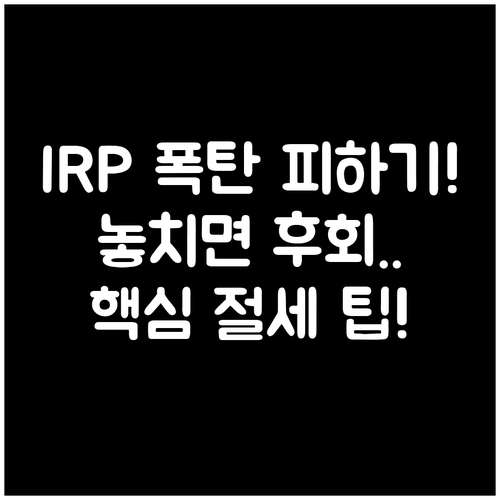 IRP를 단순한 보관 통장을 넘어, 은퇴 후 삶을 책임질 종신형 투자 수단으로 적극 활용하시길 바랍니다.